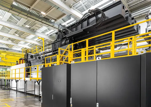 The two-platen machine with a clamping force of 110,000 kN was specifically developed for parts with projected areas of more than 2.5 m² and was recently commissioned at the customer’s site. It enables the cost-efficient production of very large-format components in an integrated production process. Through functional integration, a reduced number of parts and lower assembly effort, new degrees of freedom arise in design, lightweight construction and product design.